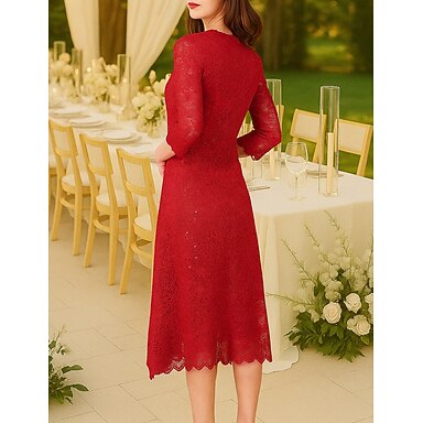 Sukienka w kształcie litery A o długości herbacianej kolumnowa sukienka sukienka na studniówkę sukienka na przyjęcie sukienka dla matki panny młodej z rękawem 3/4 dekoltem w kształcie V elegancka w