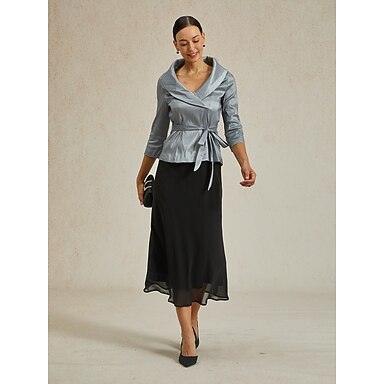 Damskie Linia A Elegancja Moda Midi Średni Talia Spódnice Falbana Wielowarstwowy Nieelastyczny Walentynki Nowy Rok Czarny Wiosna Szyfon