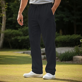 Męskie Lniane spodnie Spodnie Letnie spodnie Ściągana na sznurek Elastyczny pas Prosta noga Równina Komfort Oddychający Pełna długość Codzienny Święto Urlop Moda Czarny Biały