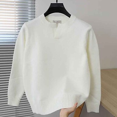 Męskie Sweter sweter Sweter z dzianiny Prążkowany Robić na drutach Regularny Dzianiny Równina W serek Moda Podstawowy Dzienne zużycie Randka Odzież Jesień i zima Czarny Biały S M L