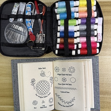 Zestaw do haftowania, książka do samodzielnego haftowania, kompleksowy przewodnik po szyciu z 86 wzorami, z 24-pakowym zestawem nici do haftu, idealny dla początkujących &entuzjaści