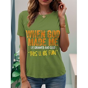 Damskie Podkoszulek Nadruk Graficzny Litera Elegancki Codzienny Krótki rękaw Okrągły dekolt Zwykłe topy Codzienny Weekend Niebieski Czarny Biały Rumiany róż Zielony Lato Wiosna