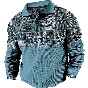 Męskie Plemienny Koszulki polo waflowe Koszula golfowa Długi rękaw Koszulki polo Koszule z kołnierzykiem Zabytkowe Codzienny Ubrania wakacyjne Stroje na imprezę Guziki Druk 3D Jesień i zima Królewski