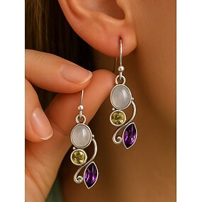 Brincos pendentes boêmios em formato de lágrima para mulheres com detalhes em pedras preciosas coloridas, joias vintage de estilo étnico para uso casual, festas e festivais