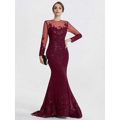Sereia Cauda Escova Vestidos de baile Vestidos de noite Vestido de Baile Vestido formal Brilhante Brilho & Glitter Sensual Manga Longa Ilusão Decote Carnaval Noivado Renda com Apliques 2025