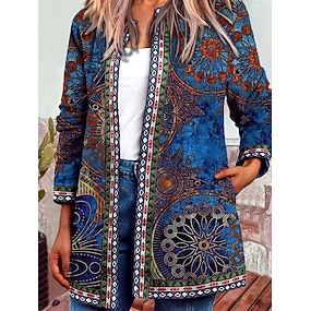 Mulheres Blusão Dia a Dia Decote Quadrado Imprimir Floral Casual / Diário Vintage Ajuste Largo agasalhos Manga Longa Primavera Azul Oceano S