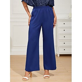 Mulheres Perna larga chinês Básico Comprimento total Cintura Alta Tecido Bolsos Cintura elástica Confortável Macio Micro-Elástica Casamento Formal Azul Royal Verão Primavera Normal