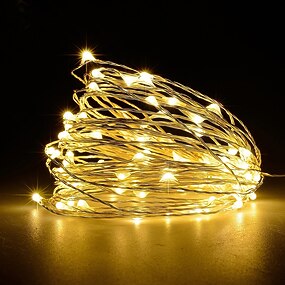 elegante festa de recepção de casamento 5m 50 luzes de corda de fio prateado led, luzes de fada alimentadas por bateria para casa, natal, casamento&decoração de festa