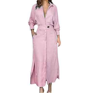 Mulheres Camisetão Vestido Longo Vestido Maxi Bolsos Fenda Diário Encontro Férias Ativo Moda Colarinho de Camisa Manga Longa Preto Branco Rosa Cor