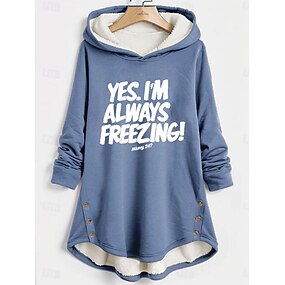 Mulheres Pulôver Moletom Com Capuz Gráfico Letra Quente Casual Difusa Manga Longa Com Capuz Tops longos Casual Esportes Imprimir Rosa Azul Cinzento Inverno