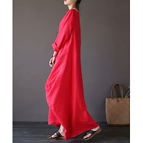 Mulheres Vestido Longo 100% Algodão Vestidos Para o Verão Vestido Kaftan Vestido branco Básico Casual Diário Ao ar livre Ajuste Largo Tecido Meia Manga Gola Redonda Exército verde Preto Branco Vinho
