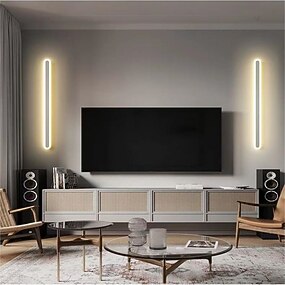 luminária de parede longa minimalista lightinthebox, lâmpada de parede moderna de fundo LED de 40 cm/60 cm para sala de estar, quarto, cabeceira, luminária de parede interna de alumínio, arandela