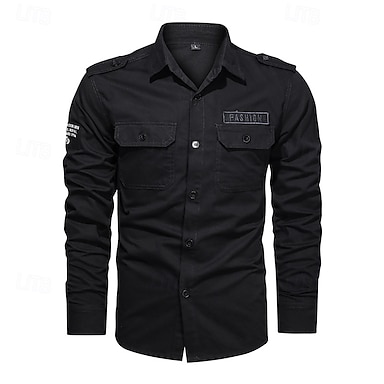 Homens Camisa Social camisa de verão Camisa casual camisa de botão Camisa de carga Preto Caqui Verde Tropa Manga Longa Tecido Colarinho de Camisa Férias Havaiana Bolsos Roupa 100% Algodão Moda Casual