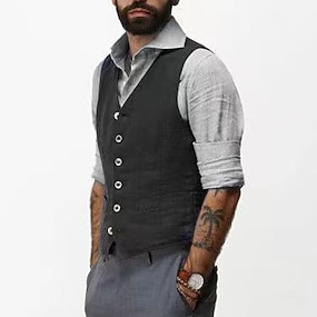 Homens Colete Gilet Roupa Diária Férias Para Noite Vintage Moda Primavera & Outono Botão Poliéster Confortável Tecido Não Trespassado Lapela Normal Azul Marinho Escuro Cinzento Escuro Café Colete