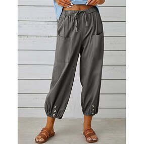 Mulheres Calças Casual Diário Longas Tecido Bolsos laterais Respirabilidade Confortável Sem Elasticidade Final de semana Preto Branco Cáqui Cinzento Primavera Verão Normal