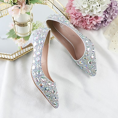 Mulheres Saltos Sapatos De Casamento Sandálias Sapatos de vestir Lantejoulas de Cristal com Brilho Sapatos Brilhantes Casamento Festa Sandálias de casamento Sapatos de noiva Sapatos de dama de honra