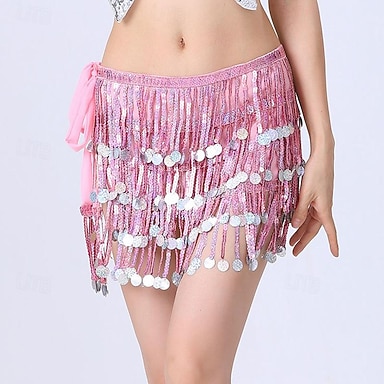 Dança do Ventre Acessórios de Dança Cinto Purpurina Corda Cingida Cor Pura Mulheres Espetáculo Treino Alto Poliéster Paetês