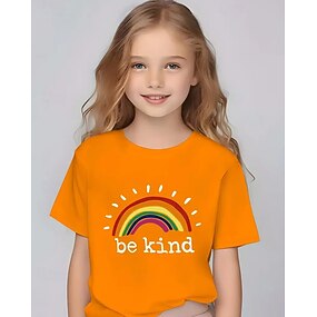 Para Meninas 3D Arco-Íris Camisa Camiseta Manga Curta Verão Primavera Moda Básico Infantil 4-12 anos Gola Redonda Ao ar livre Casual Diário Normal