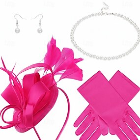 Conjunto Derby Luvas Peça para Cabeça Colar com acessórios Fantasia Mulheres Baile de Máscaras Casamento Plastrão Festival de Corridas de Cavalos Adulto Peça para Cabeça Luvas Brincos Todas as