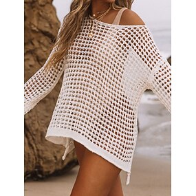 Mulheres Roupa de Banho Cobertura Vestido de Banho roupa de banho Renda Com Corte Férias Roupa de Praia Tecido Manga Longa Fatos de banho