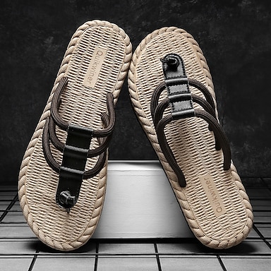 Homens Chinelos e flip-flops Couro Dividido Respirável Confortável Antiderrapante Mocassim Preto Cáqui Bege