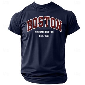 Camiseta Gráfica Masculina Boston Massachusetts Est. 1630 Camiseta do Orgulho da Cidade de Manga Curta