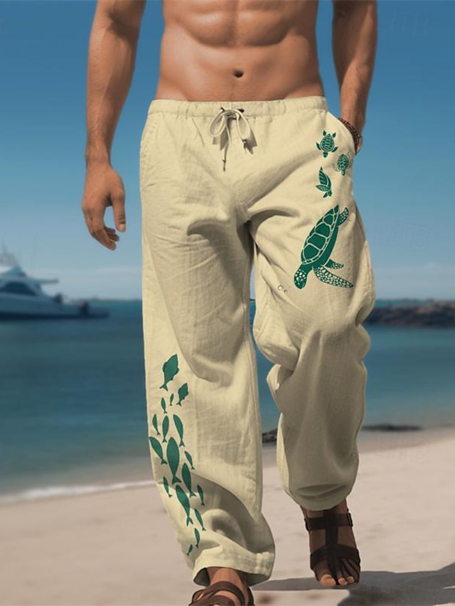 Gênero:Homens,Tipo de Calça:Calças,Calças largas,Calça casual,Calças retas,Estilo:Férias,Havaiana,Ocasião:Ao ar livre,Streetwear,Roupa Diária,Tecido:Lençóis de algodão,100% Poliéster,Detalhes:Design de cordão elástico,Tipo de Cintura:Cintura Média,Cuidados:Limpeza Molhada e Seca,Lavável,Corte da Peça:Normal,Estampa:Animal,Tartaruga,Peixes,Estação:Outono & inverno,