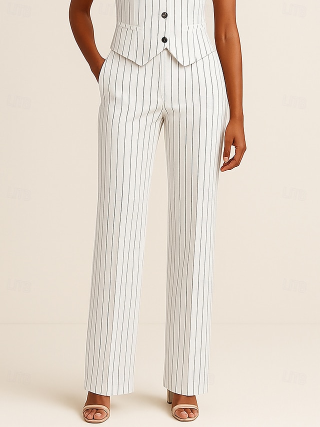 Gênero:Mulheres,Tipo de Casaco:Calça de terno,Ocasião:Noite Formal,Formal,Convidado do casamento,Tecido:Risca de giz,Estilo:Simples,Elegante,Silhueta:Ajuste reto,Comprimento / Cauda:Até o Tornozelo,