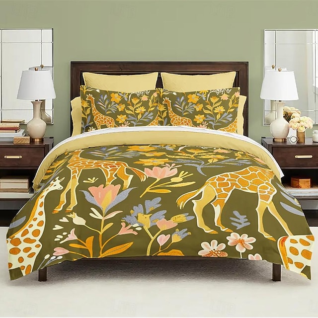 conjunto de capa de edredom de contos de fadas da floresta conjunto de padrão de plantas tropicais de algodão macio conjunto de cama de luxo de 3 peças decoração de casa presente gêmeo completo king queen size capa de edredom