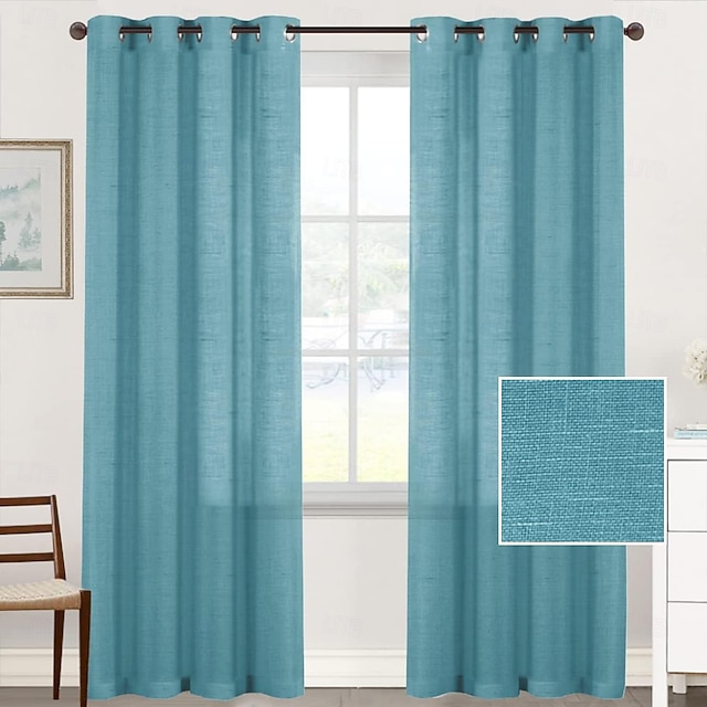 Cortinas de Linho Natural Painéis Mistos de Cortina para Sala de Estar Cortinas Transparentes 84 polegadas de Comprimento 2 Peças Conjunto Painéis com Ilhós