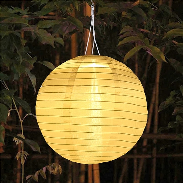 Lanterna solar globo de 12 polegadas (30 cm) estilo chinês ao ar livre ip65 à prova d'água nylon pendurado luz led, branco quente para jardim, festa, decoração de quintal