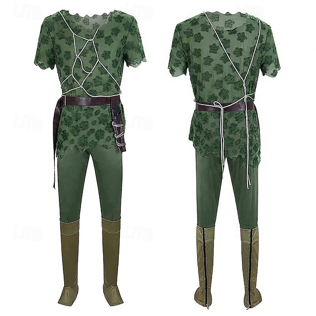 [Tecido]: Confeccionado em poliéster de alta qualidade, este traje oferece durabilidade e conforto, garantindo uma experiência agradável de uso para eventos temáticos e cosplay. O tecido apresenta uma sobreposição de renda texturizada para adicionar profundidade e interesse visual, imitando as texturas naturais de um ambiente florestal. [Caimento]: O traje consiste em uma túnica verde de mangas curtas com uma barra irregular, projetada para se assemelhar a folhas e criar uma estética inspirada na floresta. O caimento é complementado por calças verde-escuro ou pretas que harmonizam com a parte de cima, garantindo um visual coeso e elegante. [Destaques do Design]: Atenção especial é dada aos acessórios, incluindo um cinto marrom que ajusta na cintura para acentuar a silhueta, e um chapéu combinando que realça a aparência temática da floresta. Além disso, capas para botas estão incluídas para dar a ilusão de botas altas, oferecendo praticidade sem sacrificar o estilo. [Ocasiões]: Perfeito para o Carnaval, bailes de máscaras e outros eventos temáticos, este traje permite que tanto crianças quanto adultos incorporem personagens de contos de fadas como Peter Pan, adicionando magia e encanto a qualquer encontro. [Faixa de Tamanhos]: Disponível em vários tamanhos, incluindo P, M, G, GG, 2GG para adultos e tamanhos para crianças que variam de 3-4 anos (110cm) a 9-10 anos (150cm), garantindo um caimento adequado para diferentes faixas etárias.
