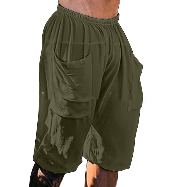 Homens Calção Shorts de linho Shorts de verão Cintura elástica Bolso frontal Tecido Conforto Macio Diário Ao ar livre Para Noite Moda Casual Preto Verde