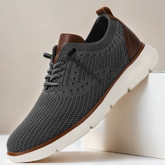 tênis de malha respirável masculino com detalhes em couro sintético – calçados esportivos leves e elegantes para uso casual e conforto diário