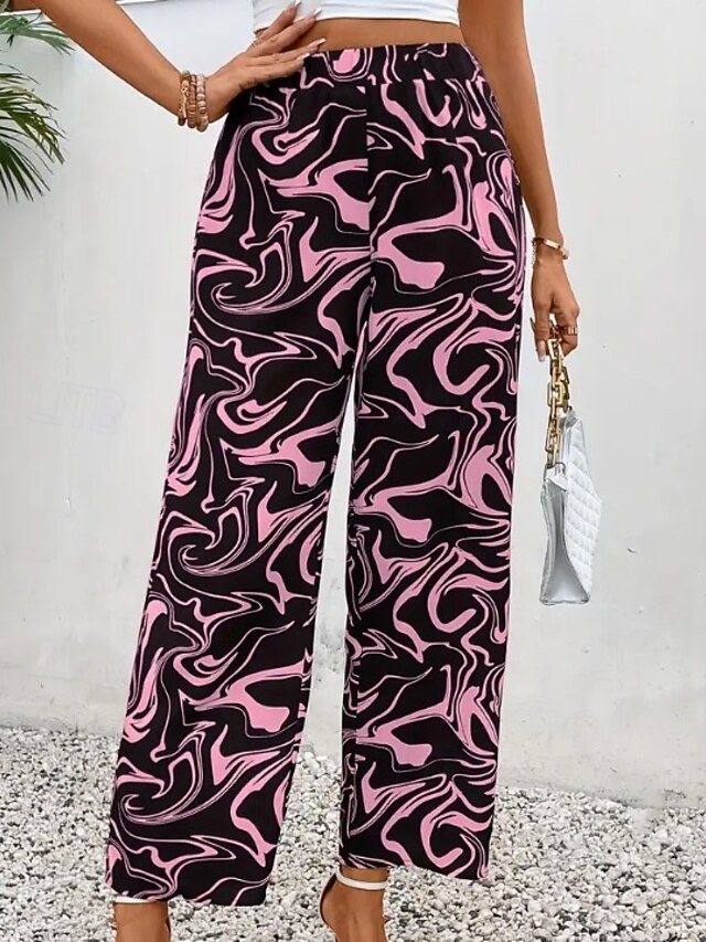 Mulheres Perna larga Calças Moda Longas Gráfico Perna larga Estampado Respirabilidade Confortável Micro-Elástica Casual / Diário Preto Branco Rosa claro Verde Primavera Verão Normal