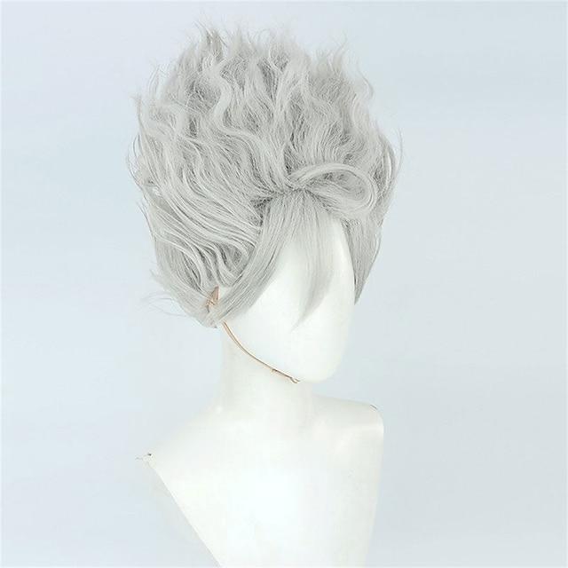Categoria:Perucas sintéticas,Corte de cabelo:Com Franjas,Material de Cabelo:Cabelo Sintético,Textura:Encaracolado,Tonalidade Principal:Prateado,Cinza,Construção da Touca:Fabrico à Máquina,Gênero:Homens,Características:Macio,Fofo,Confortável,Moda,Festa,Comprimento:Curto,Pode Receber Permanente:Não,Resistente ao Calor:Sim,Característica:Peruca cosplay,Tema:Anime,