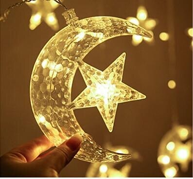 elegante festa de casamento recepção ramadan eid luzes de corda - 12 peças lua&estrela, lâmpada de cortina led de 2,5 m, casamento&decoração de festival, luzes de fada de lanterna de néon
