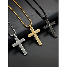Colar masculino com pingente de cruz em aço titânio com gravação da oração do Senhor, corrente de joias religiosas para a fé cristã, uso diário e presentes
