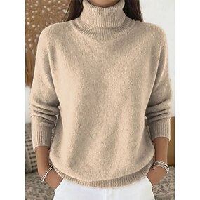 Mulheres Suéter Pulôver Elegante Moda Diário Gola Alta Tricotado Manga Longa Tops regulares Tricotar Diário Rosa Vermelho Primavera Outono