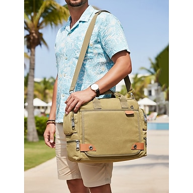 Bolsa transversal masculina de lona com vários bolsos – alça ajustável, grande capacidade, tecido resistente, ideal para uso diário, deslocamentos e viagens.