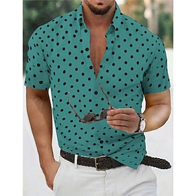Homens Camisa Social camisa de verão Camisa casual camisa de praia camisa de botão Preto Branco Vermelho Verde Manga Curta Poá Lapela Férias Diário Roupa Moda Casual Confortável