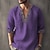 Homens Camisa de linho Camisa Popover Camisa casual camisa de praia Camisa de colarinho de banda Tecido Férias Havaiana Preto Branco Rosa Azul Manga Longa Henley Primavera Verão Roupa
