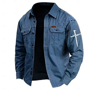 Homens Com letras estampadas Camisas de trabalho camisa ocidental Camisa de carga Manga Longa Casual Tático Desportos e Ar livre Para Noite Inverno Primavera & Outono Aberto para a Lateral Imprimir