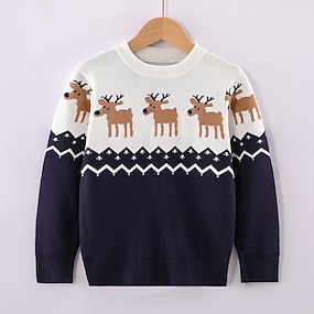 Crianças meninos camisola de natal manga longa veado azul marinho algodão blusas para crianças outono inverno presentes diários de natal diariamente natal sob medida ajuste 2-8 anos