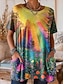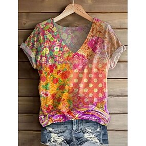 Mulheres Camiseta Imprimir Âmbar Floral Gráfico Vintage à moda Clássico Manga Curta Decote V Tops regulares Diário Final de semana Azul Amarelo Verde Arco-íris Verão Primavera