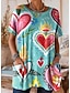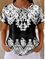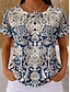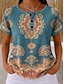 Mulheres Camiseta Imprimir Floral Gráfico Geométrica Vintage à moda Casual Manga Curta Decote V Tops longos Casual Diário Final de semana Azul Preto Vermelho Verão Primavera