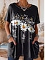 Mulheres Camiseta Imprimir Âmbar Floral Gráfico Vintage à moda Casual Manga Curta Gola Redonda Tops longos Diário Final de semana Azul Preto Amarelo Verão Primavera