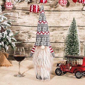 Capa de garrafa de vinho de boneca sem rosto de gnomo de natal, enchimentos de meia para crianças, enfeite de boneca de casal de gnomos, decoração de janela encantadora, enfeite de casa festivo
