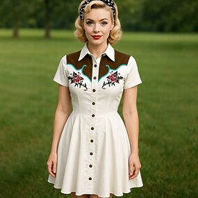 Retro Vintage Anos 50 Mini Um vestido de linha Vestido camisa vaqueira Botão para baixo Impressão 3D Fantasia Mulheres Baile de Máscaras Férias Casual Festa de Chá Adulto Vestido Verão