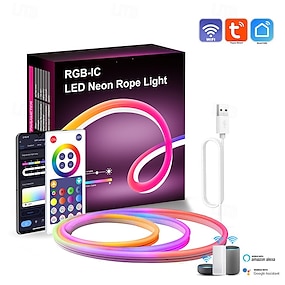 Luzes de tira led neon tuya wifi bluetooth 3m 9.84ft rgbic cor ilusão música conjunto de tira de luz de néon forma diy 16 milhões de cores controle de aplicativo remoto usb ip67 tira de luz à prova